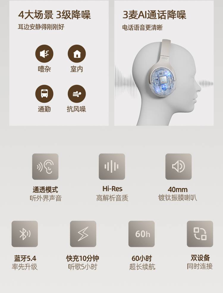4大场景 3级降噪——嘈杂、室内、通勤、抗风噪