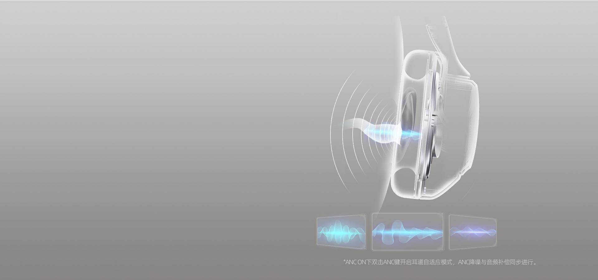 耳道自适应降噪,智能识别耳道与佩戴状态,同时进行自适应音频补偿