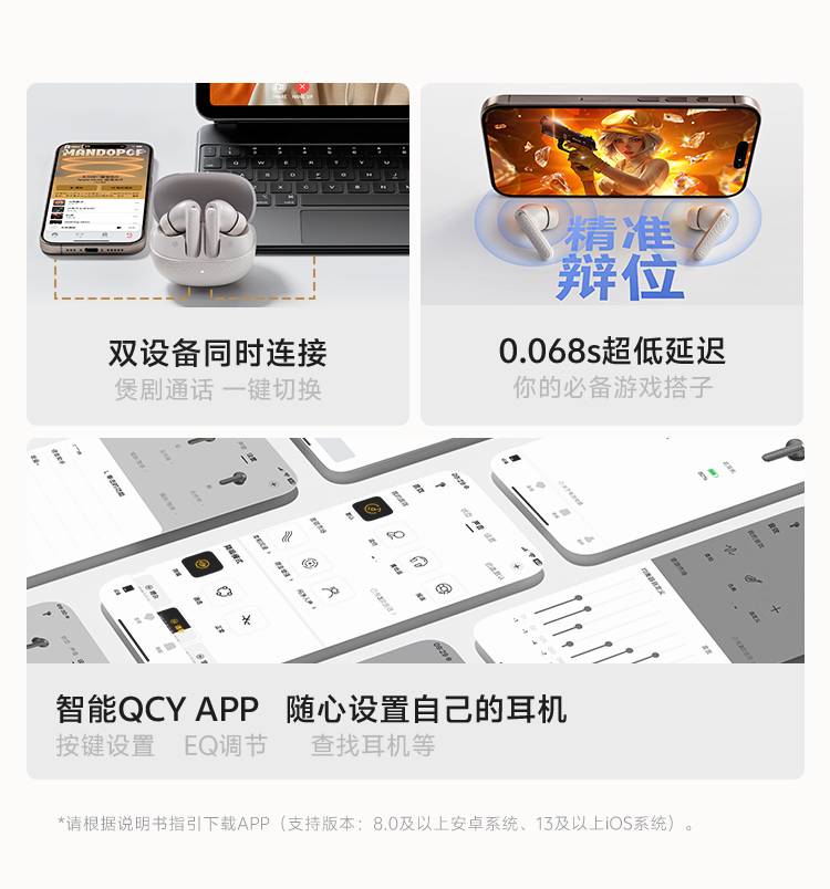 50dB六麦深度降噪 |13mm大动圈强低音 |40h超长续航