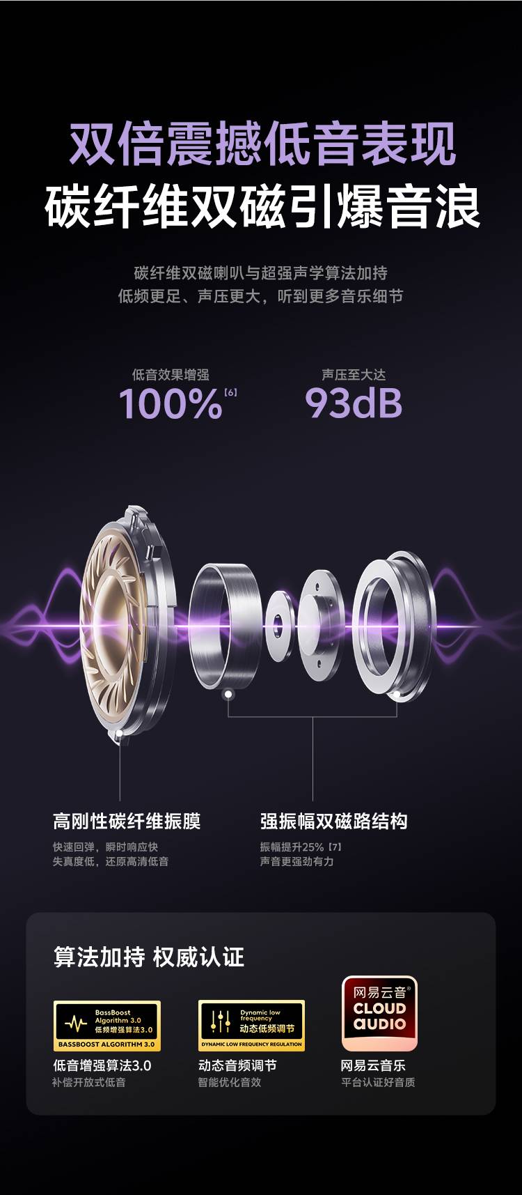 小直径舒适佩戴 | 碳纤维双磁好音 | 星环出片设计