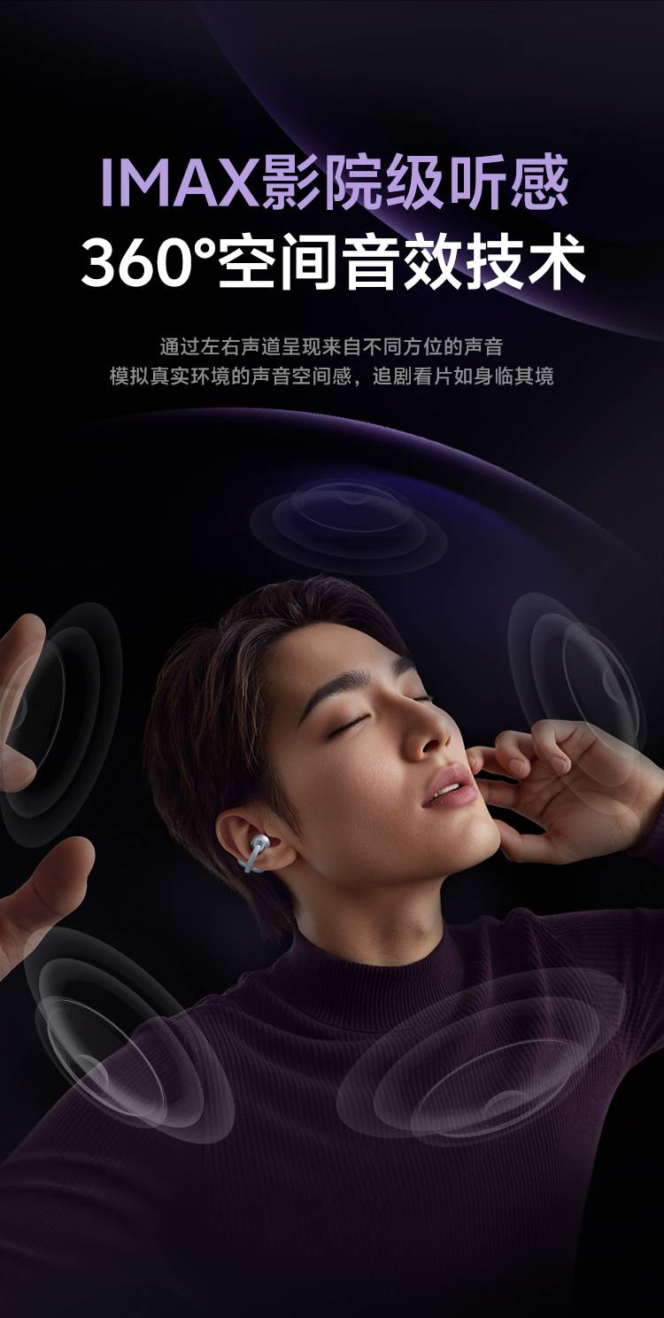 舒适不入耳设计 | 低音增强声学技术 | 360度立体空间音效