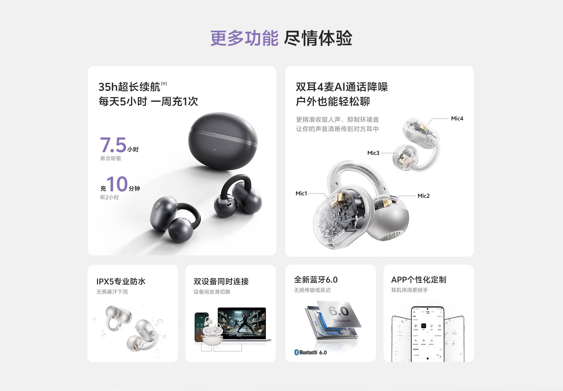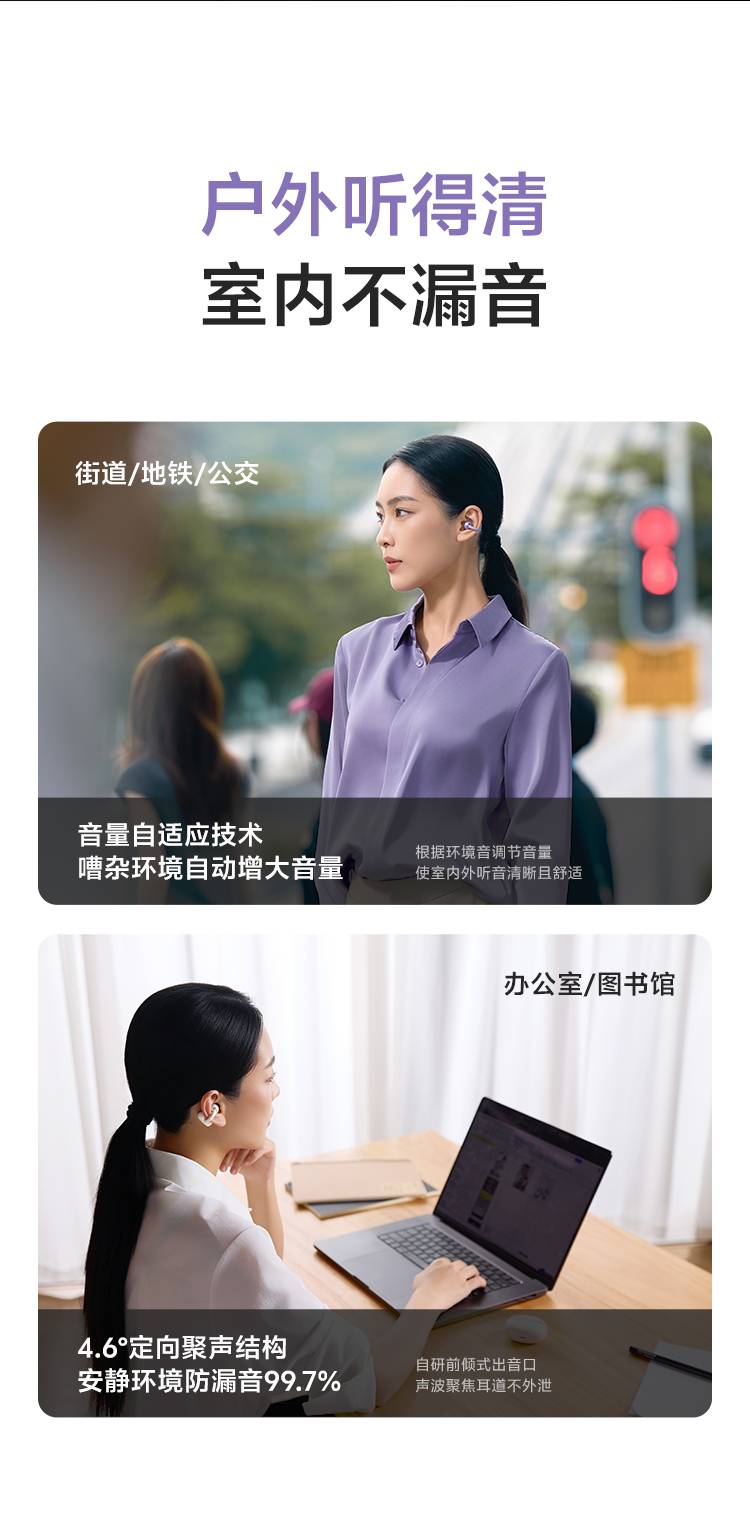 不入耳舒适耳夹 | 超大跑道型喇叭 | 不漏音定向音频