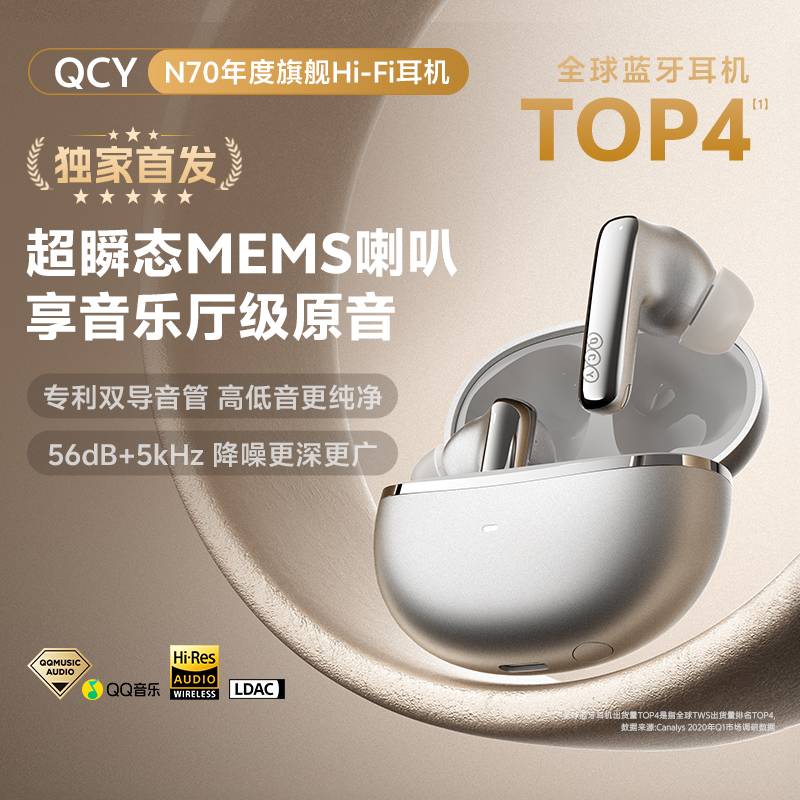46dB自适应降噪 | 6麦通话降噪+抗风噪 | LDAC&Hi-Res+QQ臻品音质认证
