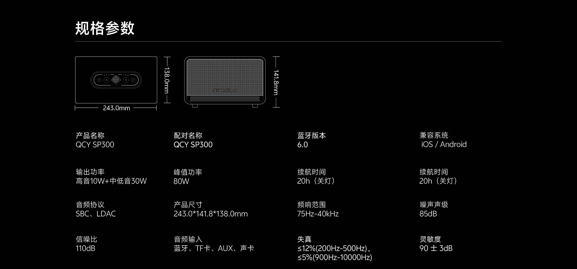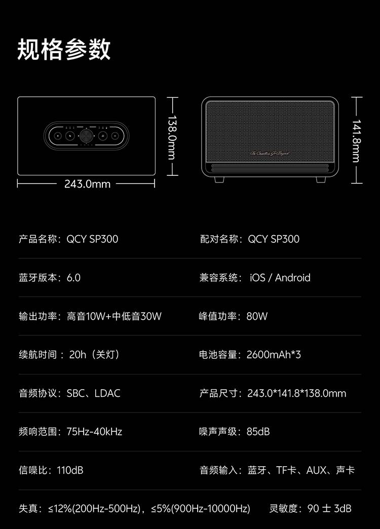 质感金属CD纹 | 40mm超大镀钛喇叭 | 86h超强劲续航