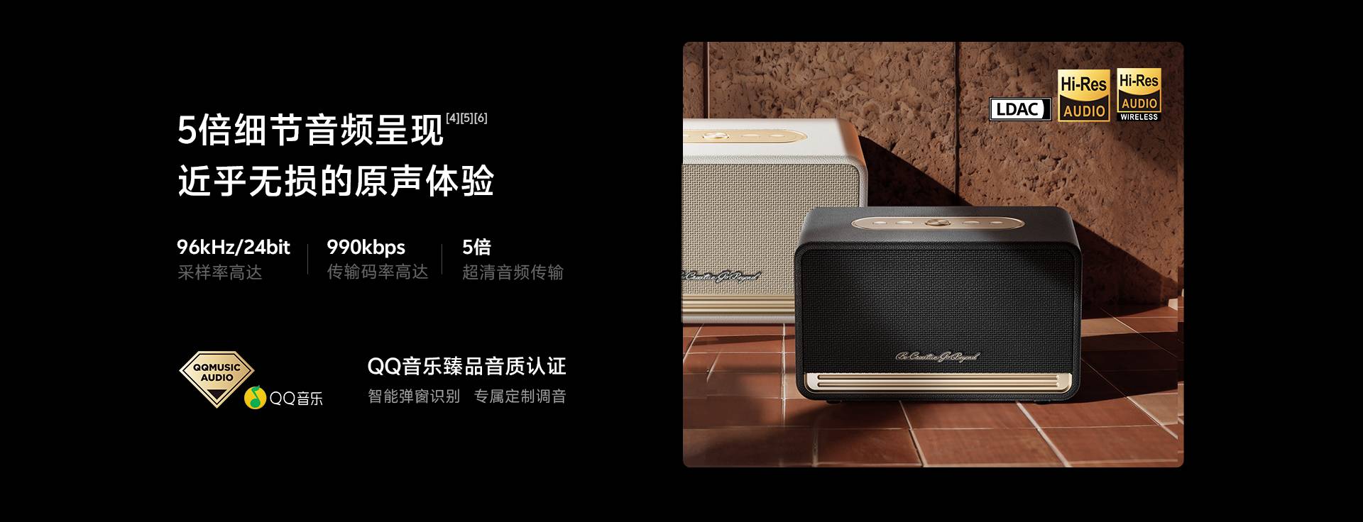 46dB自适应降噪 | 6麦通话降噪+抗风噪 | LDAC&Hi-Res+QQ臻品音质认证