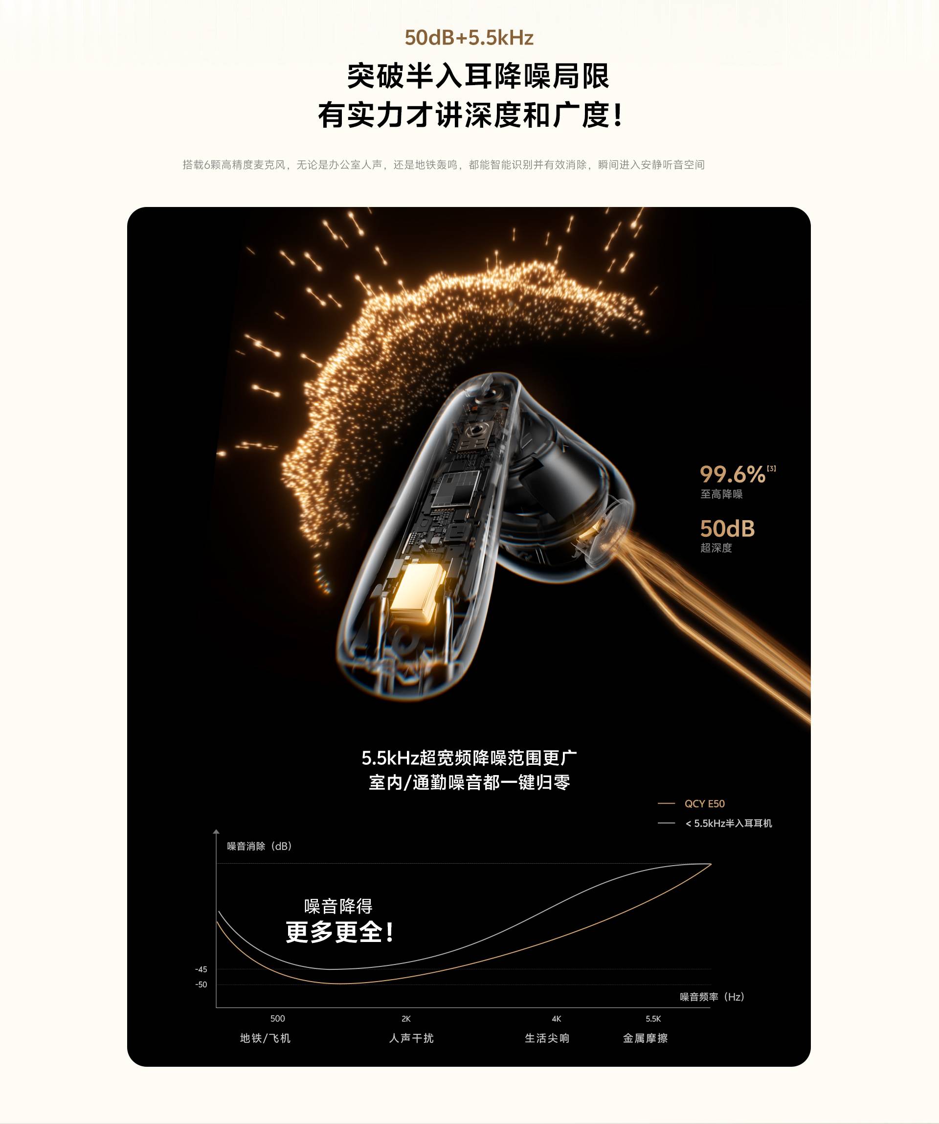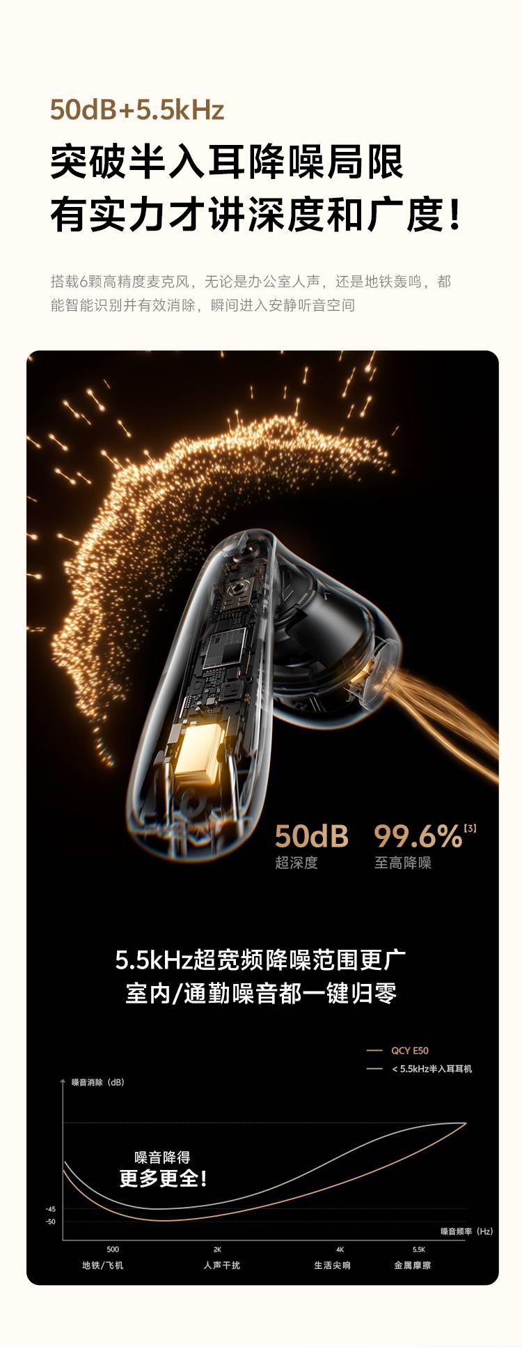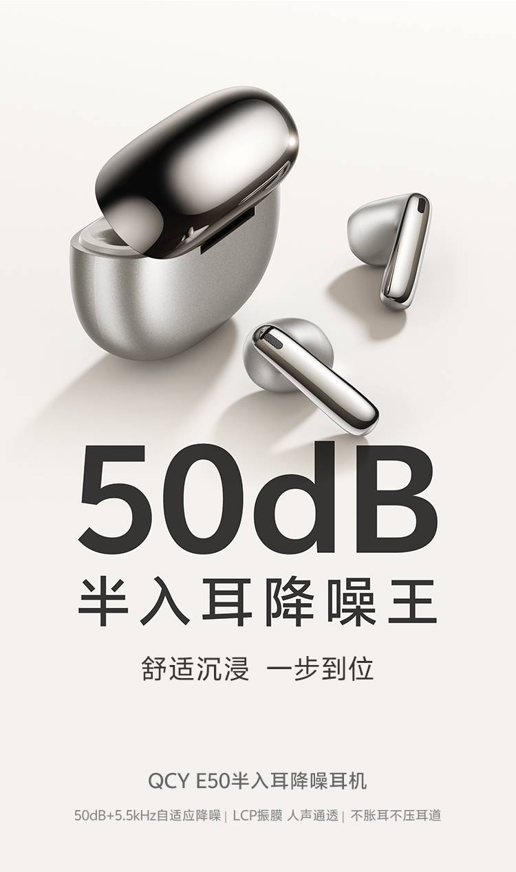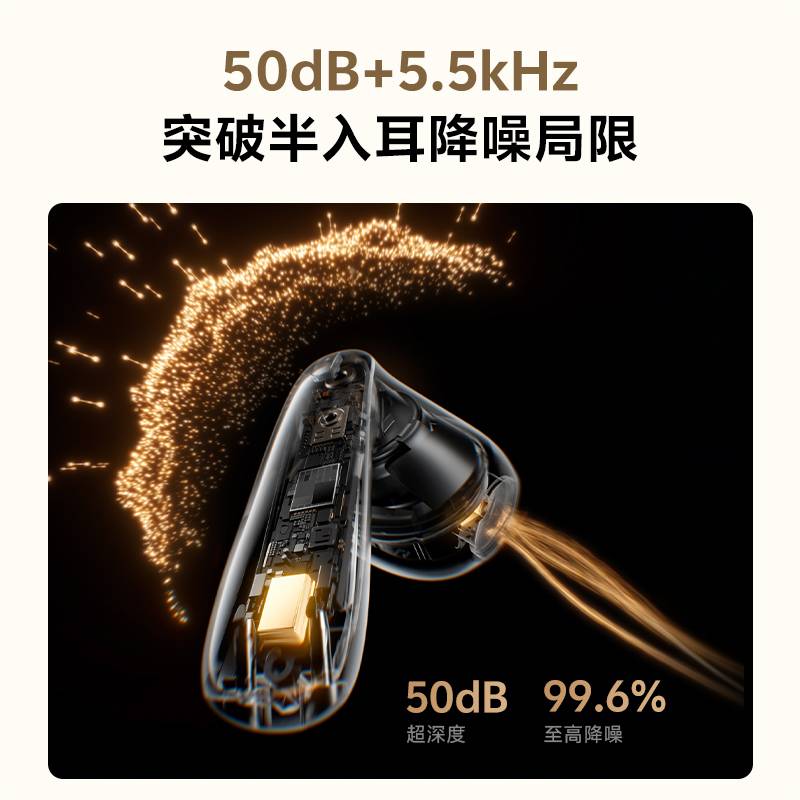 50dB+5.5kHz自适应降噪 | LCP振膜 人声通透 | 不胀耳不压耳道