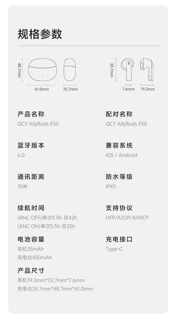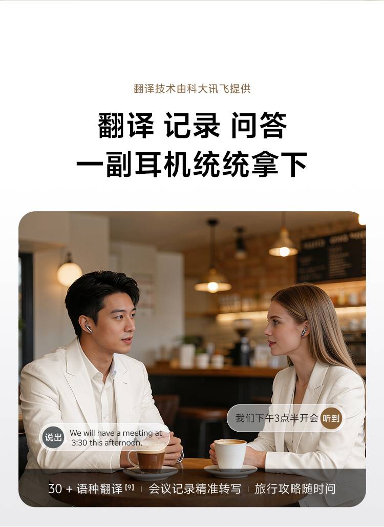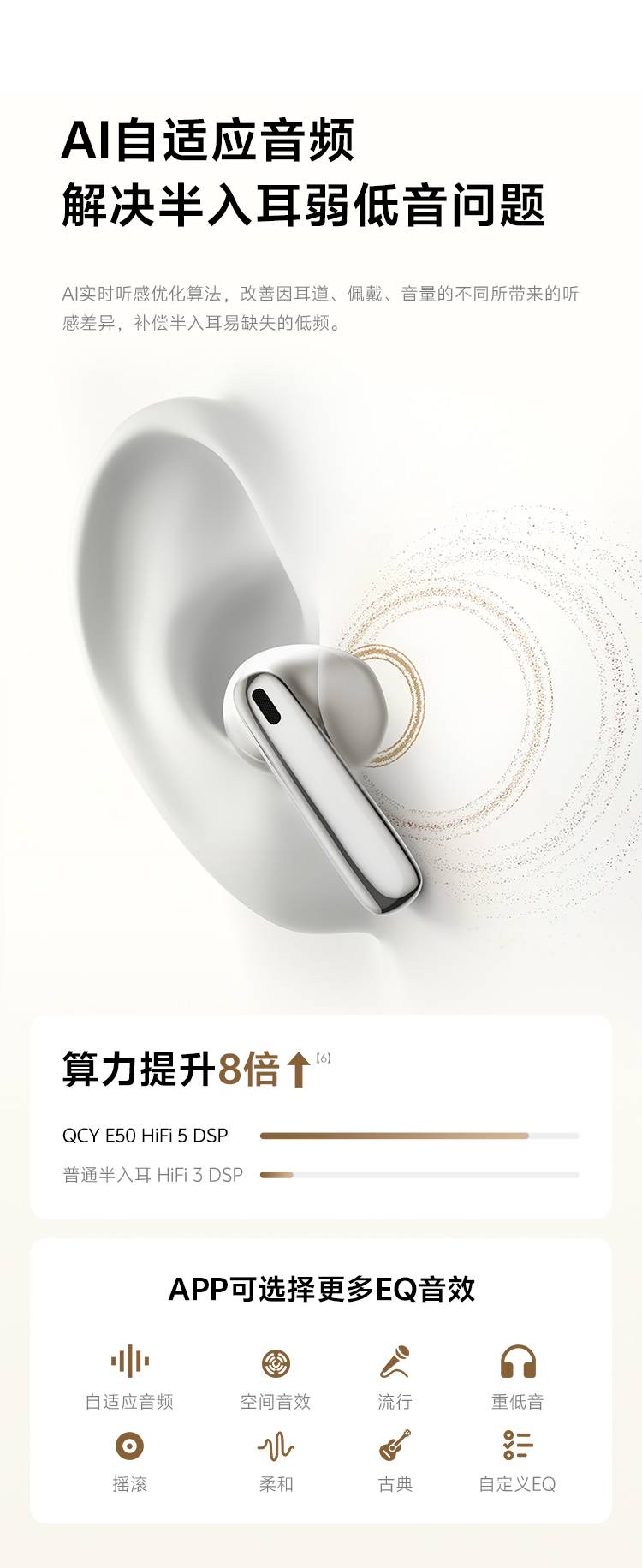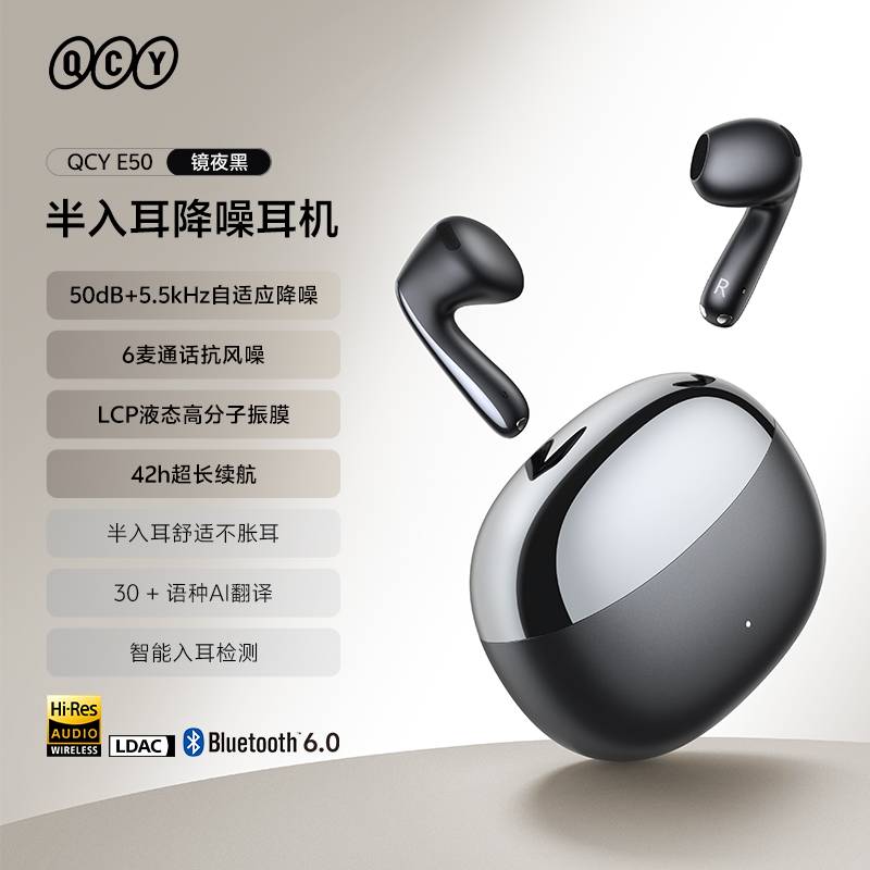 50dB+5.5kHz自适应降噪 | LCP振膜 人声通透 | 不胀耳不压耳道