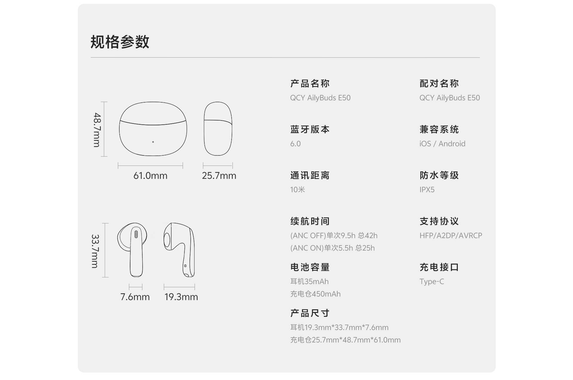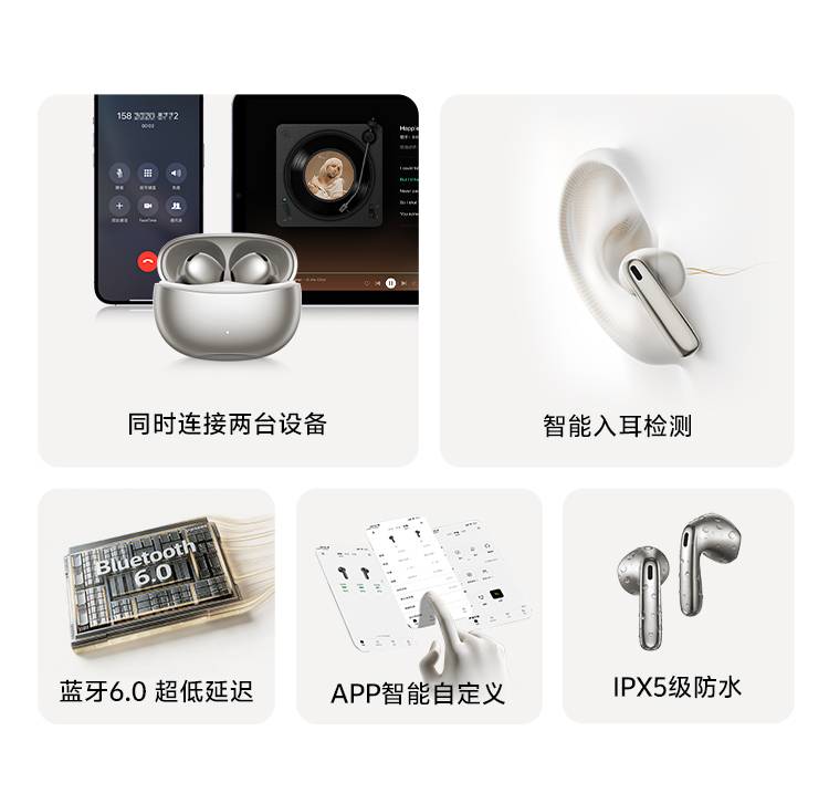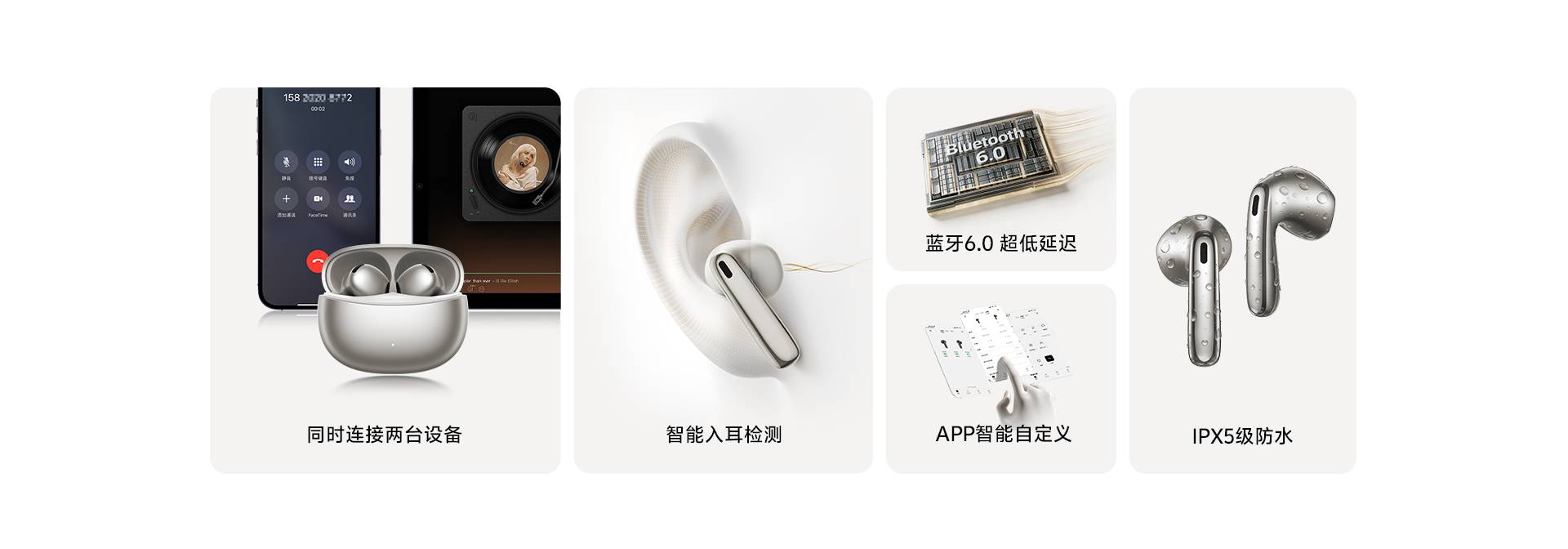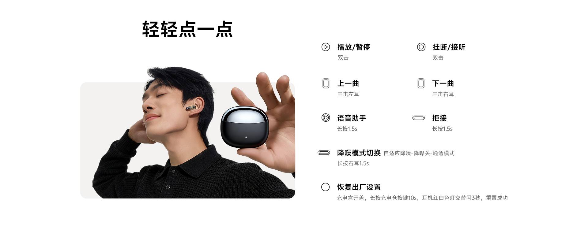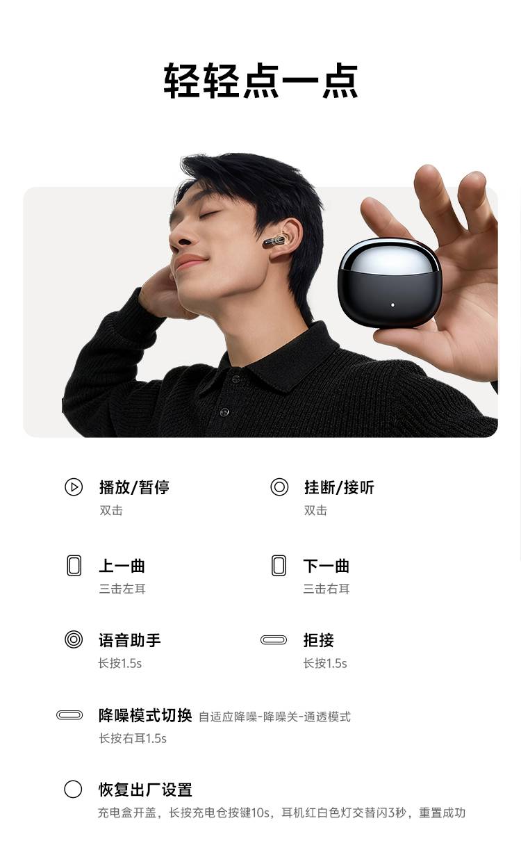 半入耳平衡主动降噪 | 6麦AI通话降噪 | 自适应抗风噪
