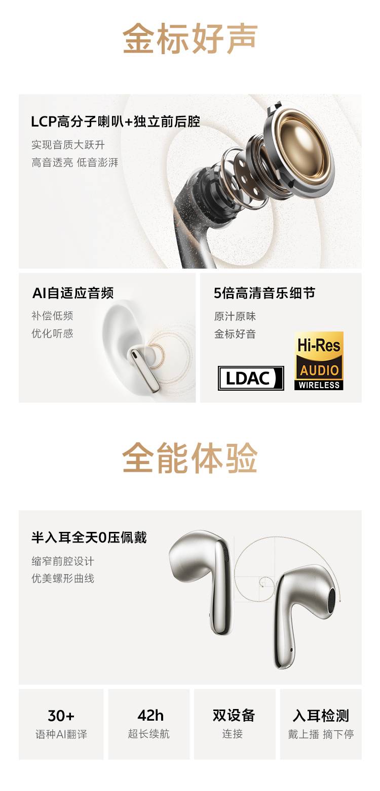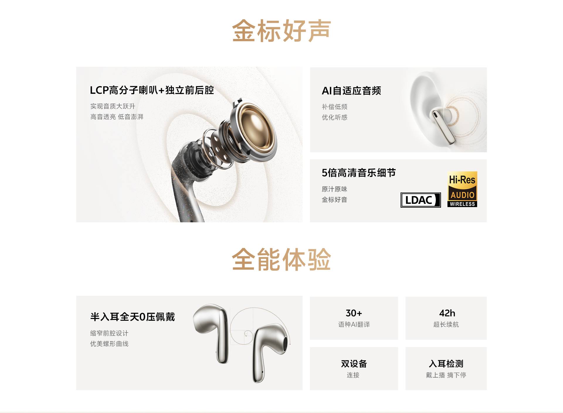 AI自适应音频 | 半入耳自适应主动降噪 | LDAC&Hi-Res金标