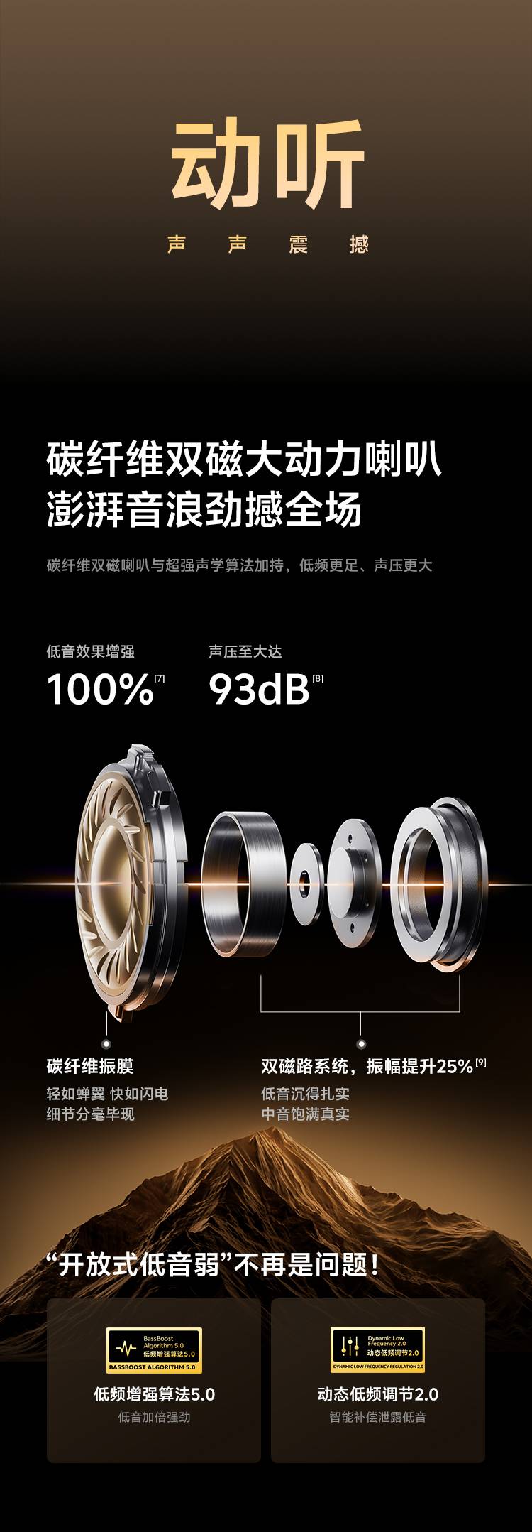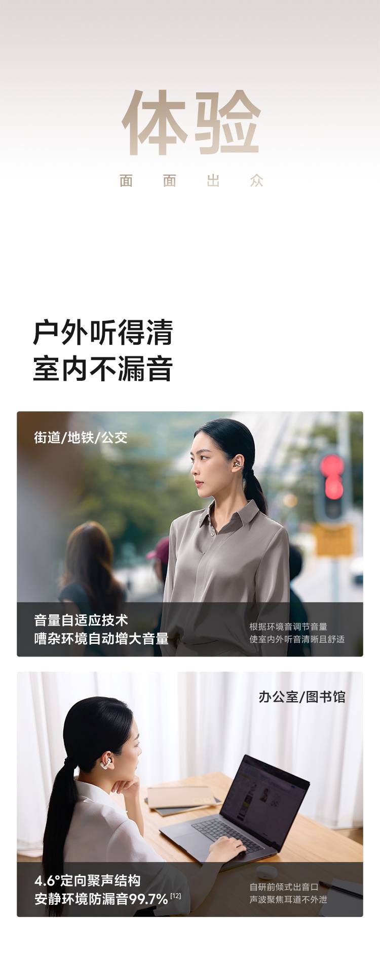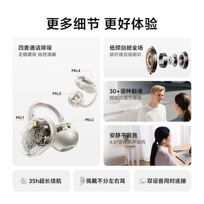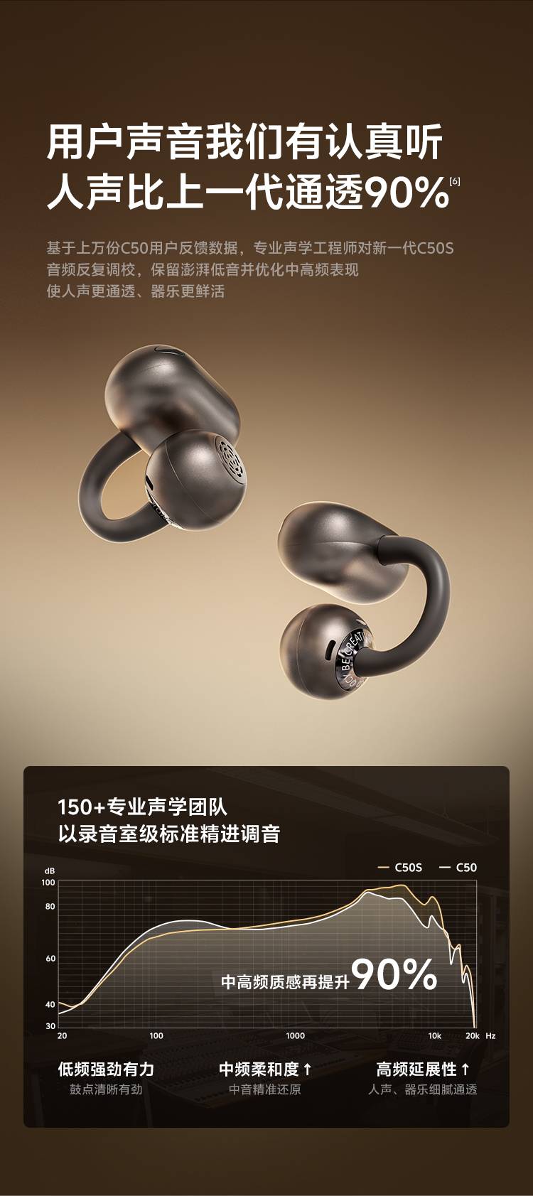 50dB+5.5kHz自适应降噪 | LCP振膜 人声通透 | 不胀耳不压耳道