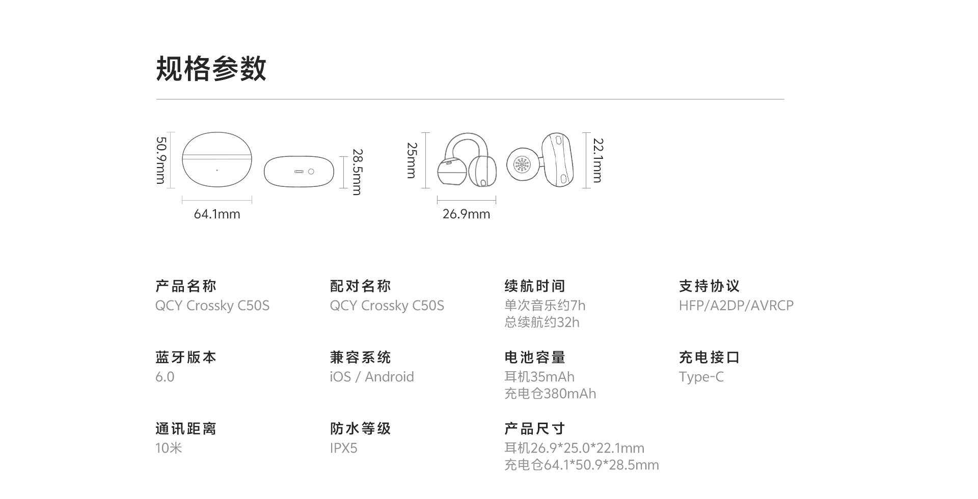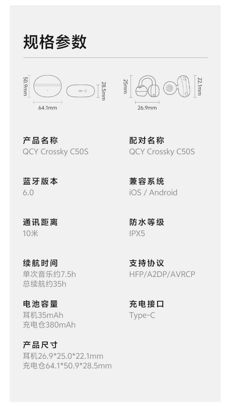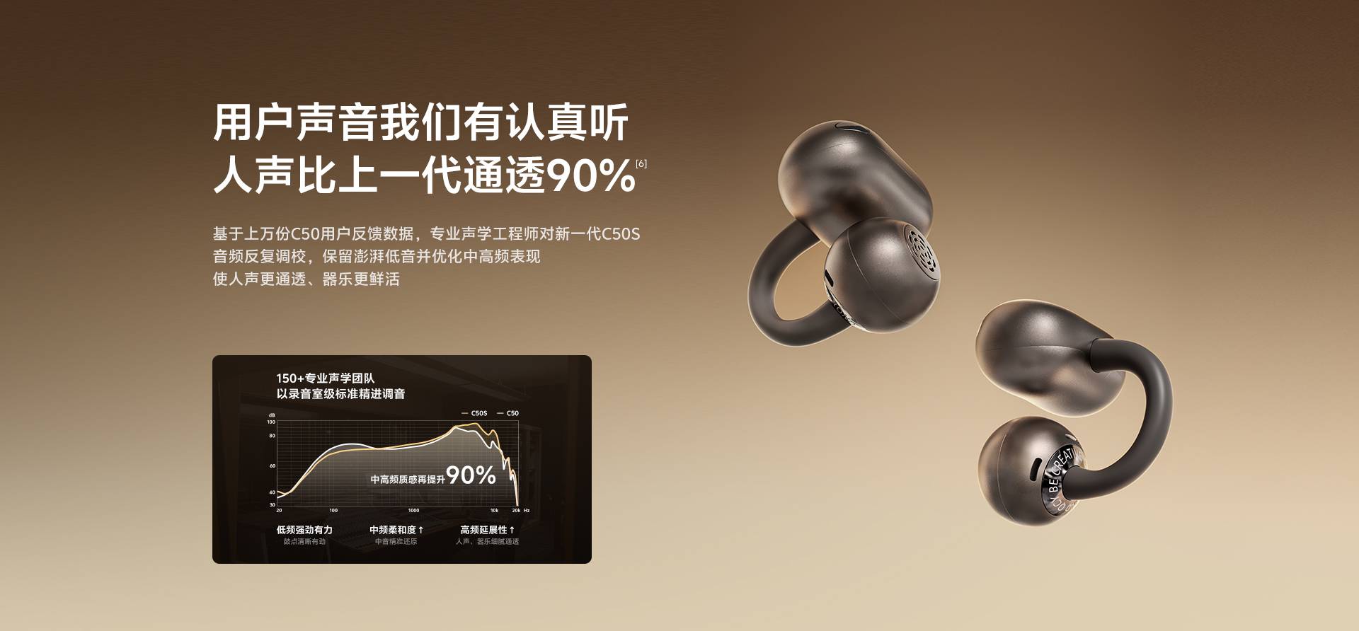 50dB+5.5kHz自适应降噪 | LCP振膜 人声通透 | 不胀耳不压耳道
