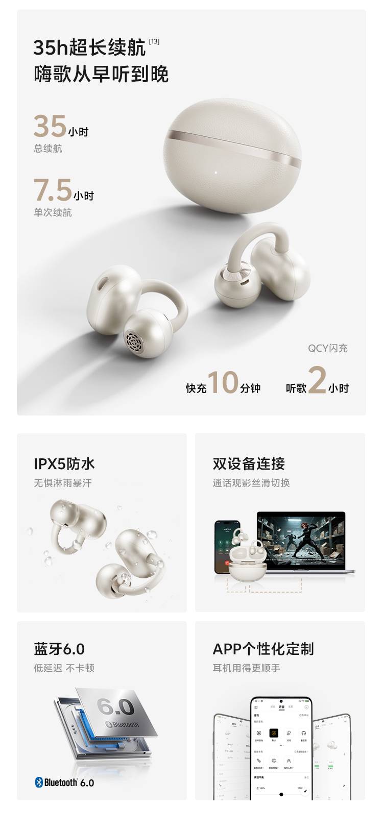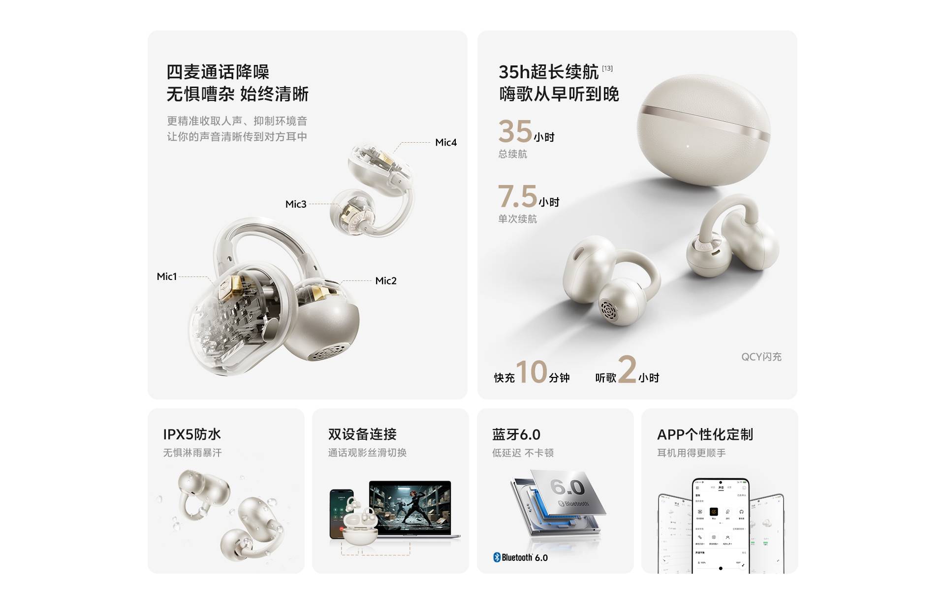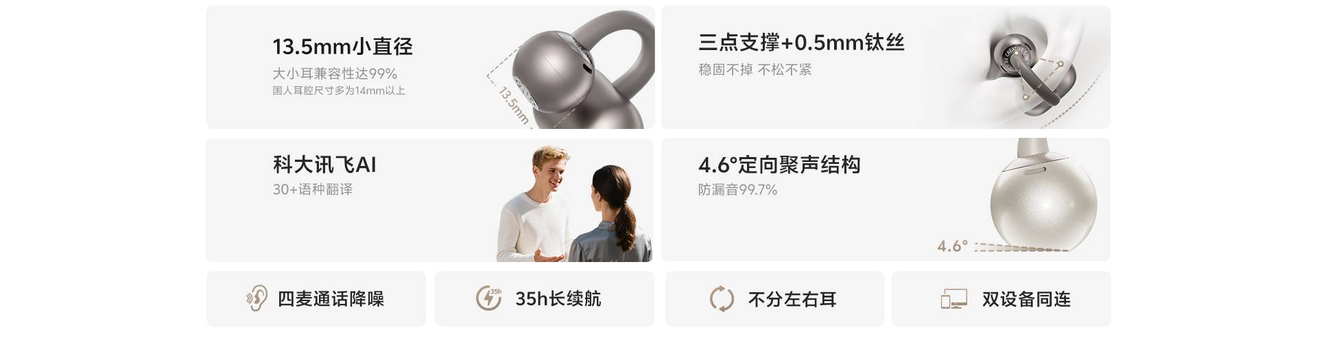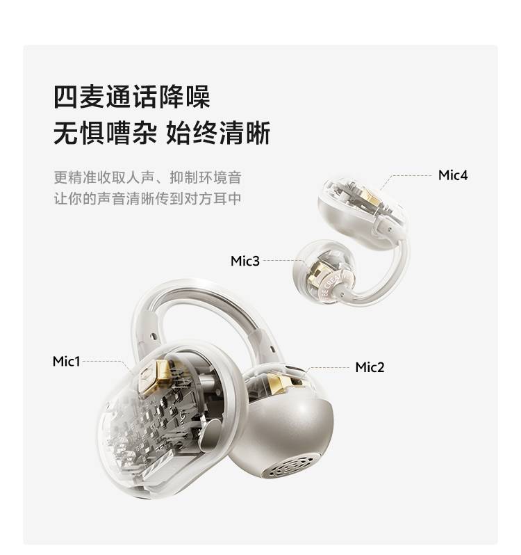 半入耳平衡主动降噪 | 6麦AI通话降噪 | 自适应抗风噪